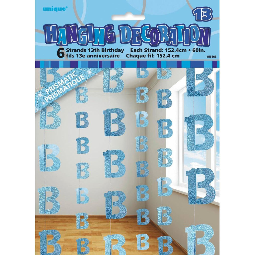 Celebrate the big 1-3 with our 13th Hanging Decorations - Glitz Blue! These shimmering decorations feature the number 13 in a sparkling blue glitter, perfect for adding a touch of glitz to any birthday celebration. Hang them from the ceiling or doorways for a dazzling display! (Ages 13 and fabulous!)