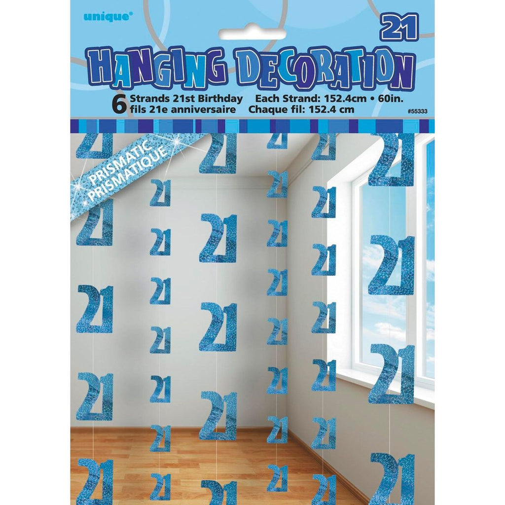 Add some sparkle and shine to your next celebration with these 21th Hanging Decorations in Glitz Blue! Perfect for birthdays, anniversaries, or any special occasion, these decorations will bring a touch of elegance and fun to your party. Hang them up and let the festivities begin!