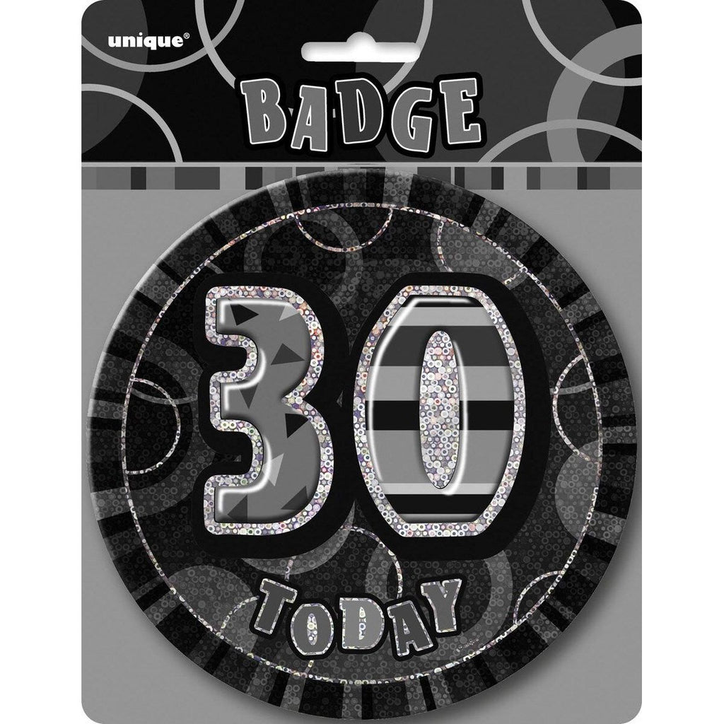 30th Birthday Jumbo Badge - Glitz Black