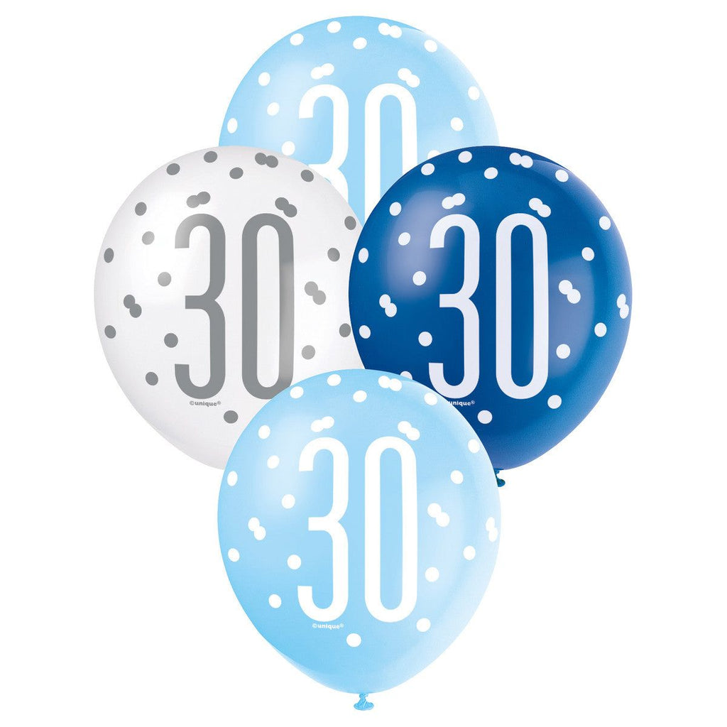30th Birthday Latex Balloons - Blue & White