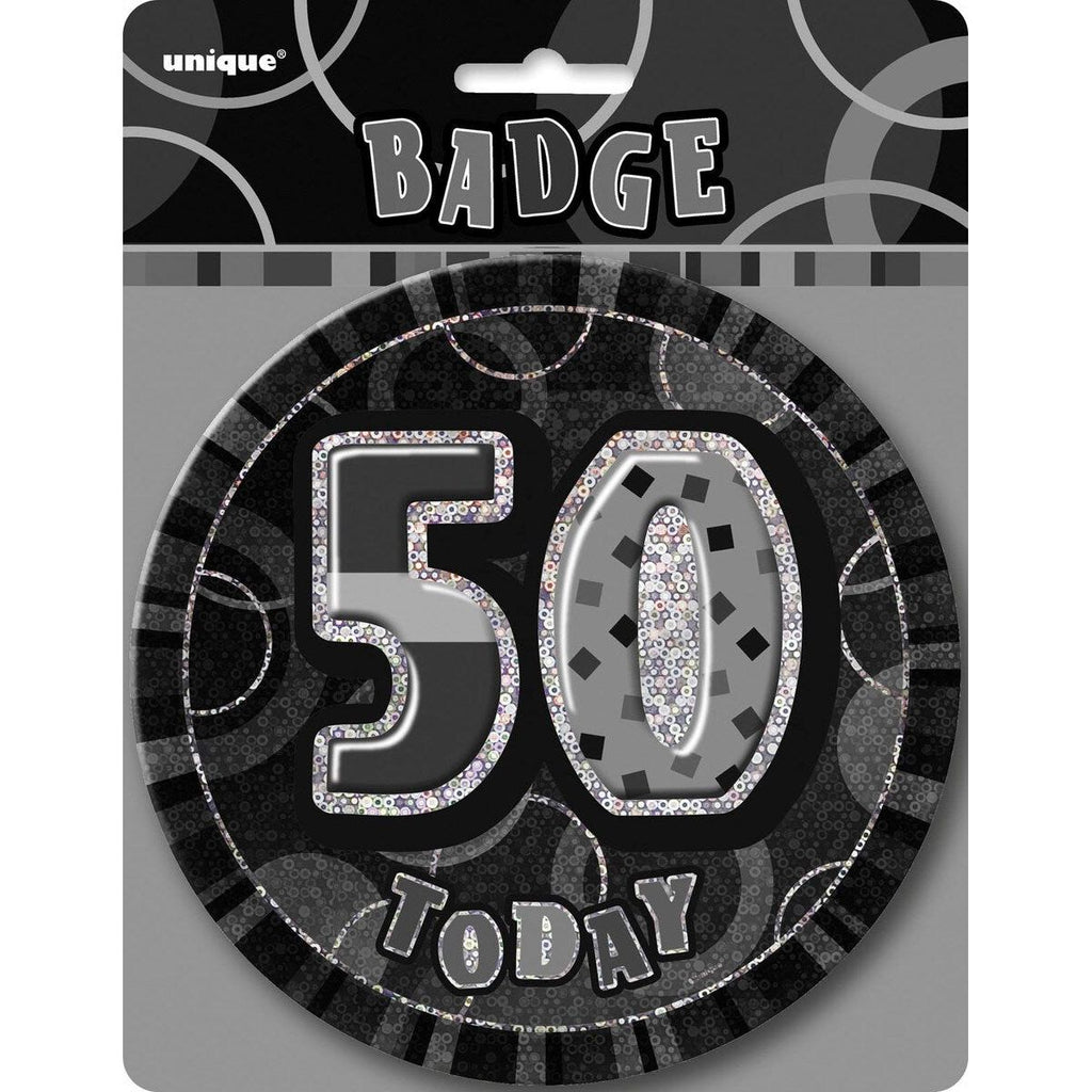 Make your 50th birthday one to remember with our Glitz Black 50th Birthday Badge! Adorned with sparkling black accents, this badge will make you stand out in the best way possible. Wear it proudly and celebrate your milestone birthday in style.