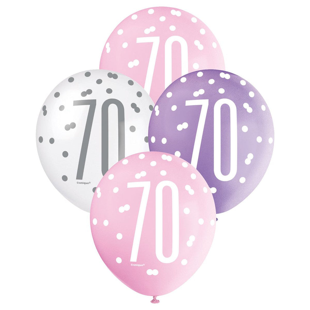 Celebrate in style with our Pink, Purple & White 70th Birthday Latex Balloons! This 6 pack of 30cm balloons adds a pop of color to any party and is perfect for any milestone celebration. Add some fun and flair to your event with these vibrant balloons.