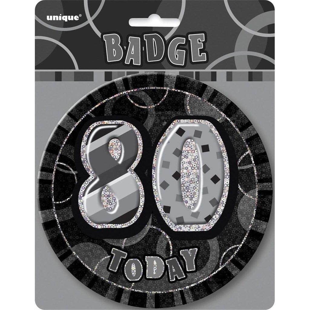 80th Birthday Jumbo Badge - Glitz Black