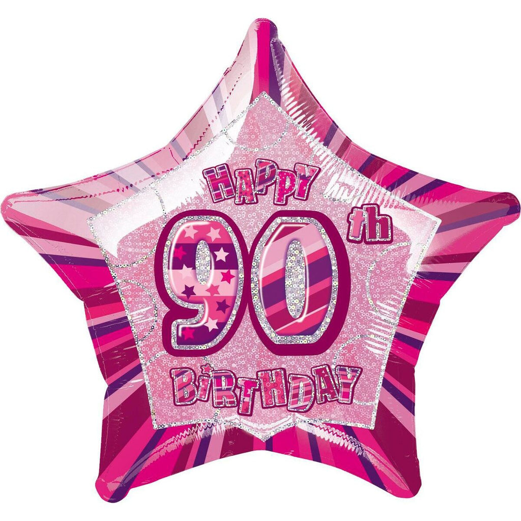 - Celebrate their 90th in style with the Glitz Pink - 90th Star Foil Balloon! This shiny foil balloon will add a pop of color and fun to any party. Perfect for anyone who loves to sparkle and shine (or just loves pink)! Say "Happy 90th!" with this playful and unique balloon.