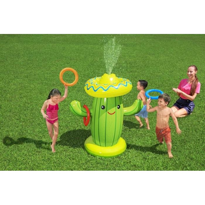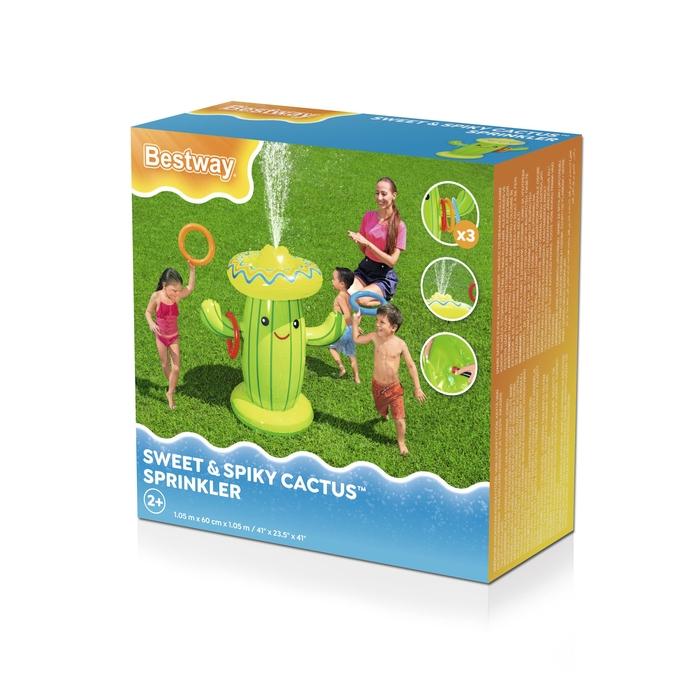 - The Bestway® Sweet & Spiky Cactus™ Sprinkler will give kids hours of entertainment. The built-in sprinkler spouts water out of the top of the cactus, allowing kids to run, jump and play all day in the misty spray. To add extra fun, this sprinkler also comes with an included ring toss game. Kids can toss the rings onto the arms of the cactus as they play in the water, helping to develop hand-eye coordination, while also encouraging their imaginations! The built-in sprayer easily attaches to a garden hose for a quick setup, and you can fill the base with water for extra stability while the kids play. It’s party time with the Bestway Sweet & Spiky Cactus Inflatable Sprinkler!