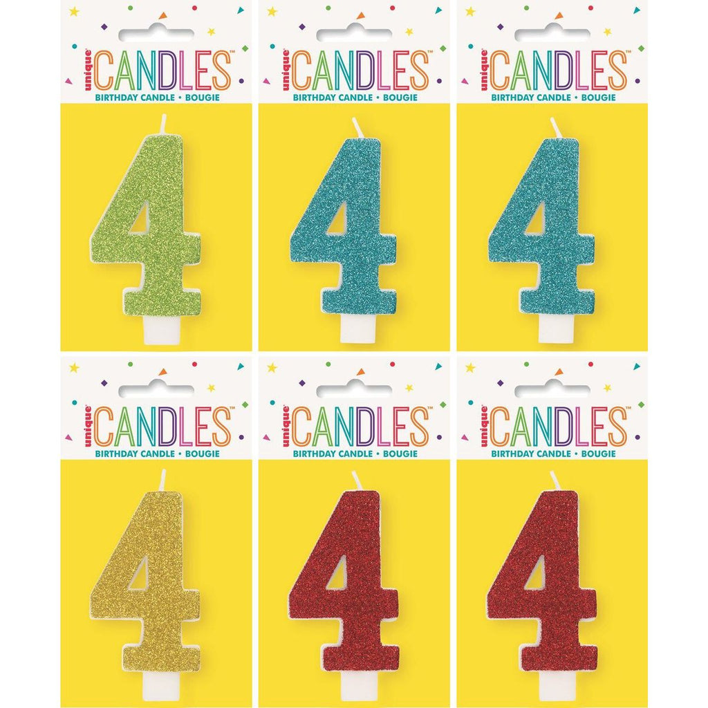 - Light up your celebrations with the Numeral Candle Glitter 4! This stunning candle adds a touch of sparkle and sophistication to any cake. Perfect for birthdays, anniversaries, or any special occasion. Make a statement with this glittery, eye-catching candle.
