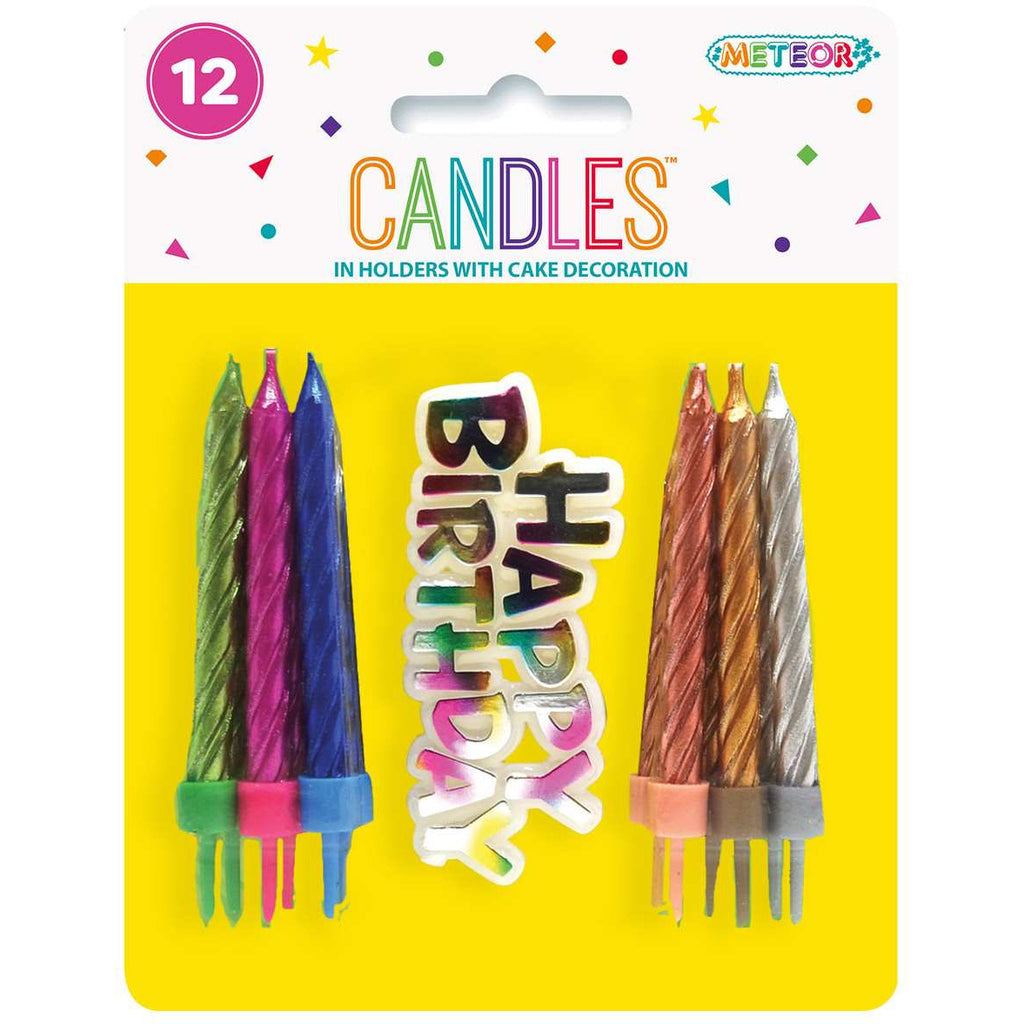- Candles With Happy Birthday Cake Decoration - Metallic Assorted