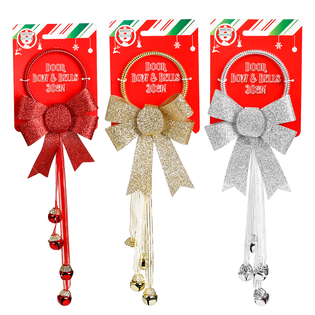 Spread joy and holiday cheer with our Christmas Door Decoration featuring a festive bow and jingling bells. Welcome guests into your home with this charming addition that will add warmth and festive spirit to your entryway. Let the sounds and sights of the season greet your visitors with a warm embrace!