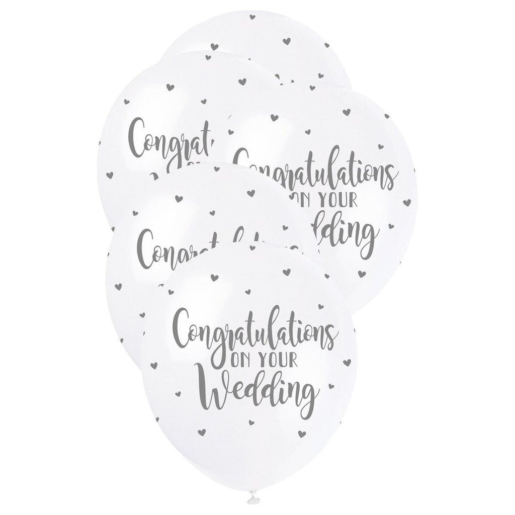 Add a touch of elegance to your congratulations message with these silver and white pearl balloons. Give the newlyweds a fun and quirky way to celebrate their special day. Perfect for wedding receptions, bridal showers, or engagement parties.