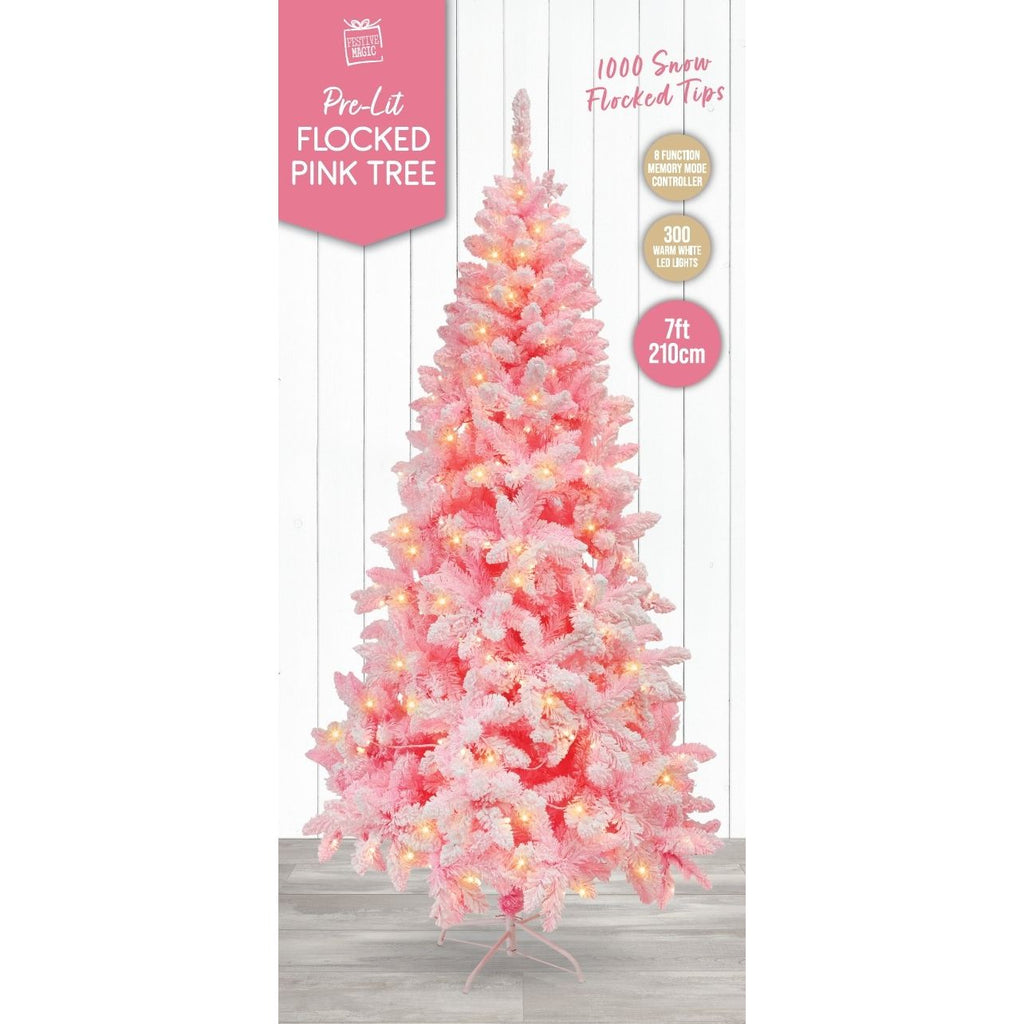 Elevate your holiday décor with the Flocked Pink Tree, standing a striking 210cm tall. This pre-lit tree features soft, snowy flocking that adds a touch of winter magic, while its warm integrated lights create a cozy and inviting atmosphere. Perfect for making a bold statement or adding a unique twist to traditional Christmas styling, this tree combines effortless charm with festive cheer. Easy to set up and dazzling by design, it's an exceptional centerpiece for your celebrations.