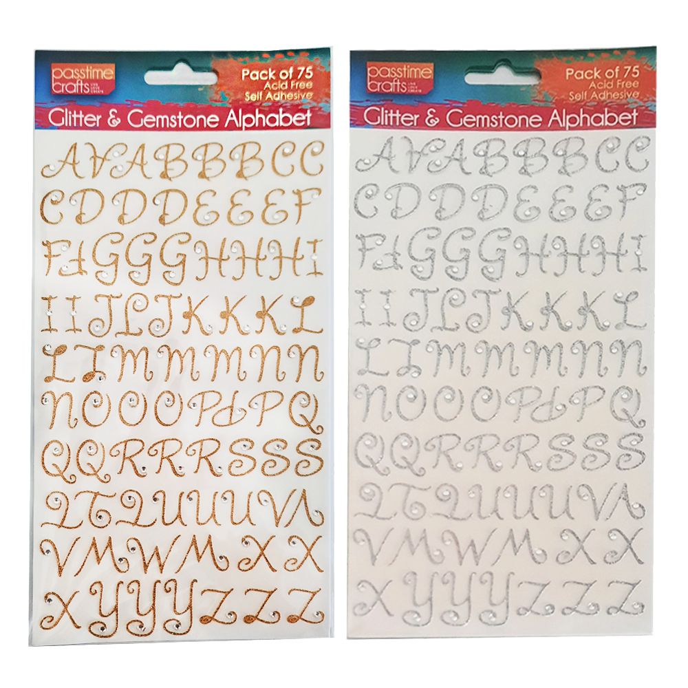 Gemstones & Glitter Alphabet Stickers - Gold or Silver