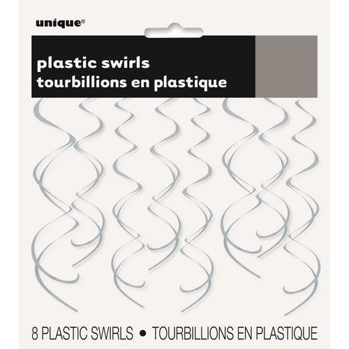 Create an elegant atmosphere with these 8 Hanging Swirl Decorations. With a length of 66 cm, these sliver decorations are ideal for any party or event. They can be easily installed with minimal effort and will be dispatched within 2-3 business days. Enhance your space with these cost-effective decorations.