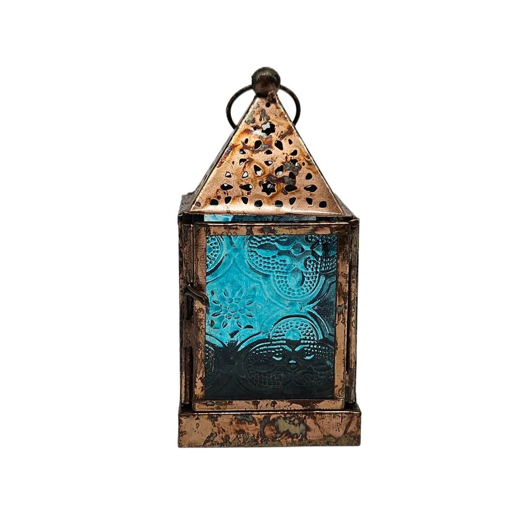 This Coloured Square Iron Lantern is a stylish and sturdy candle holder, made from durable iron in the shape of a hexagon. With its elegant gold and green design, it will add a touch of sophistication to any room. Perfect for creating a warm and inviting atmosphere.