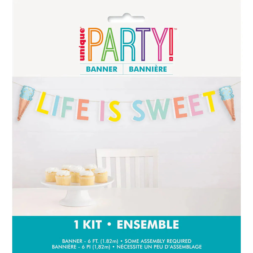 Add a touch of sweetness to any celebration with our Pastel Ice Cream Banner Kit! Featuring a "Life Is Sweet" letter banner and mini-ice cream cone foil balloons, this kit is sure to bring joy to any event. Perfect for birthdays, baby showers, or any occasion that calls for some colorful fun!