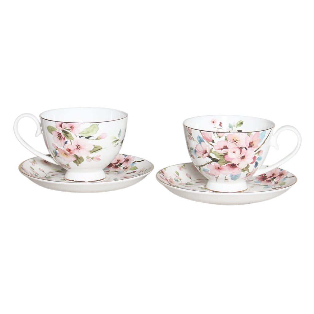 Peach Blossom on White Fine China - 2 Cup & Saucer Set