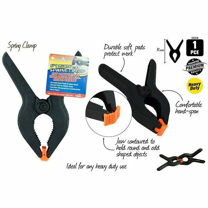 Get a grip on your projects with the Spring Clamp Medium! With durable soft pads to protect your work and a comfortable hand-span, this clamp's jaw is contoured to hold round and odd-shaped objects. Perfect for all your heavy-duty needs, it's the essential tool for any project!