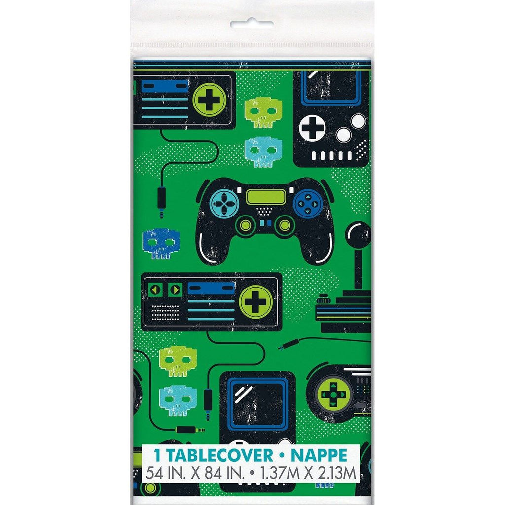 Level up your party décor with the Gamer Birthday Plastic Tablecover! This printed plastic Tablecover is perfect for any gamer's birthday party. Protect your table while adding a fun and quirky touch to your event, making clean-up a breeze. No cheat codes needed for this party essential!