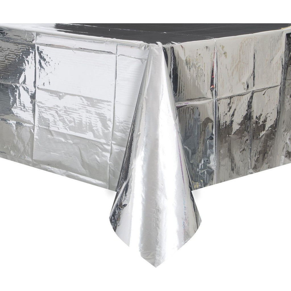 - Add some sparkling fun to your table with our Foil Rectangle Tablecover in Silver! This shiny and durable tablecover will protect your table while adding a touch of elegance to your event. Perfect for any occasion, it's the perfect way to elevate your table game. (Table not included.)