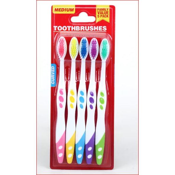 Improve your oral hygiene with our 5 pack of Toothbrushes featuring medium bristles. Designed to effectively remove plaque and debris, our toothbrushes provide maximum cleaning power while remaining gentle on your teeth and gums. Keep your smile healthy and bright with our quality toothbrushes.