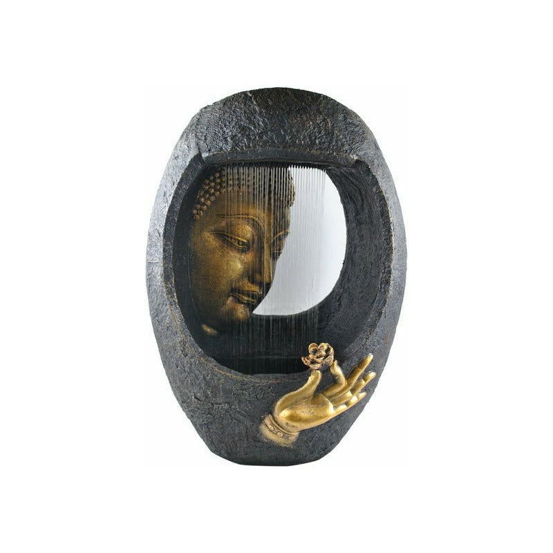 - Tranquil Buddha Waterfall Fountain, your backyard or garden will come alive with this tranquil, 61cm tall flowing waterfall feature. Enjoy the sights and sounds of a cascading fountain and a feeling of serenity.
