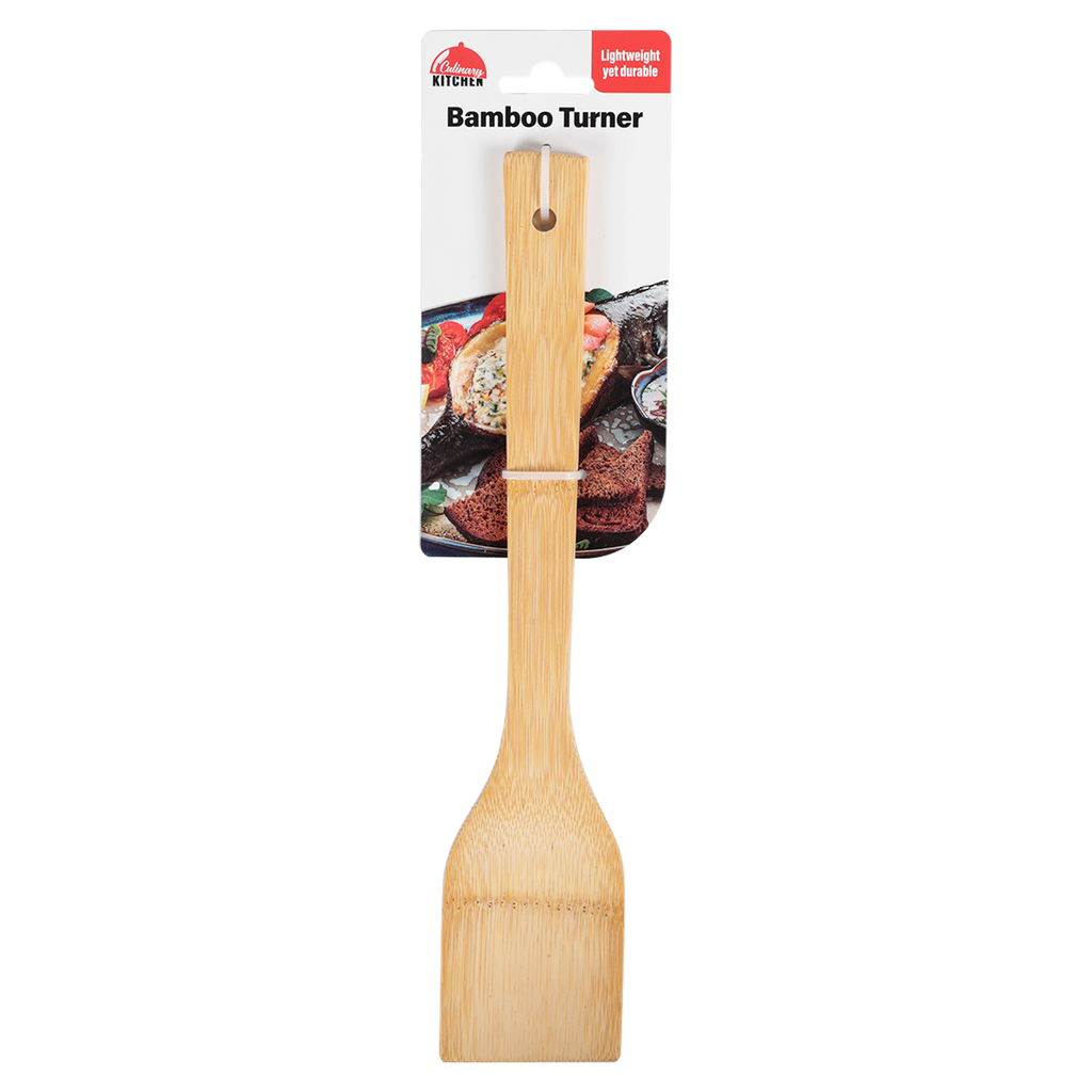 Introducing the Turner in Bamboo, the perfect addition to your kitchen tools! Made from lightweight yet durable bamboo, this turner is a must-have for all your cooking needs. Experience the convenience of bamboo and elevate your cooking game with Turner - Bamboo!